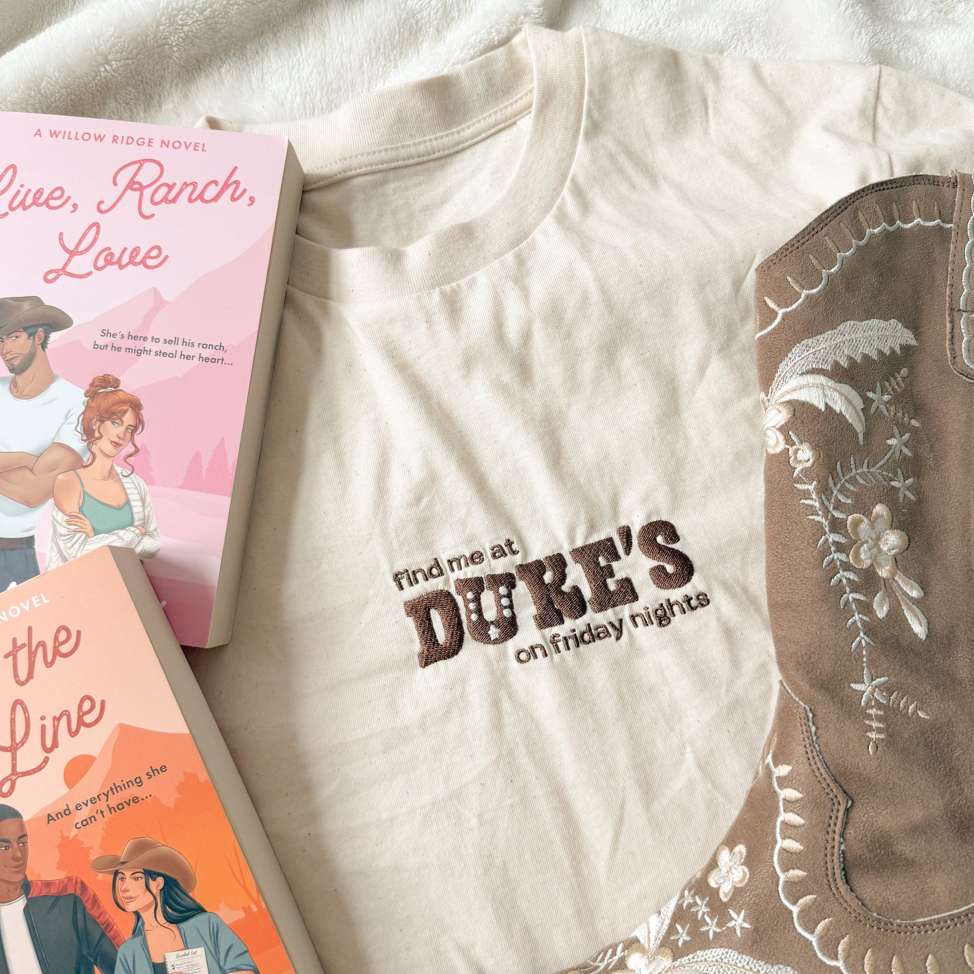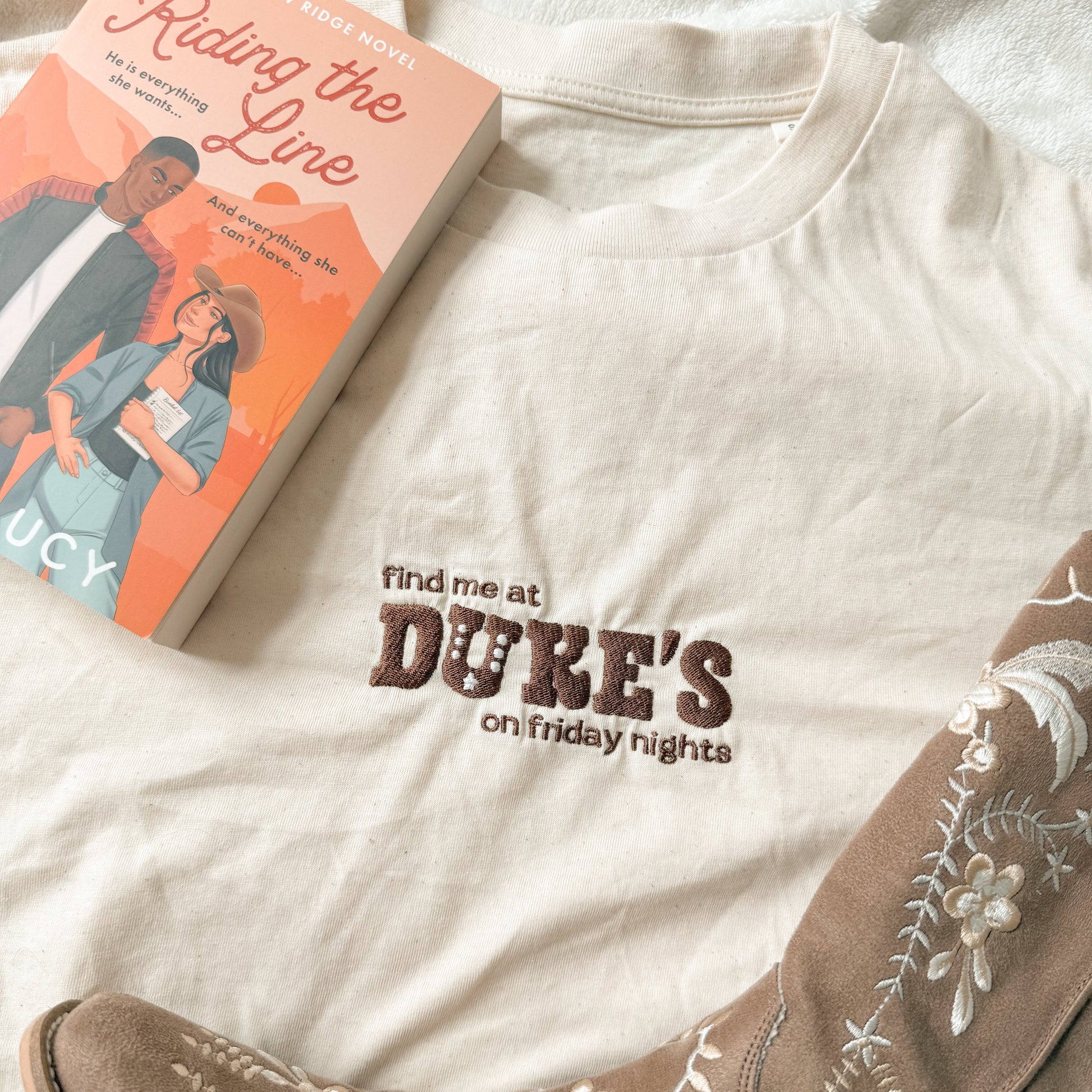 The Duke's T-Shirt is a stylish homage to the iconic setting at the heart of Willow Ridge, the place where friendships are made, stories unfold, and memories are created. Join us there next Friday for a lil' karaoke session?
